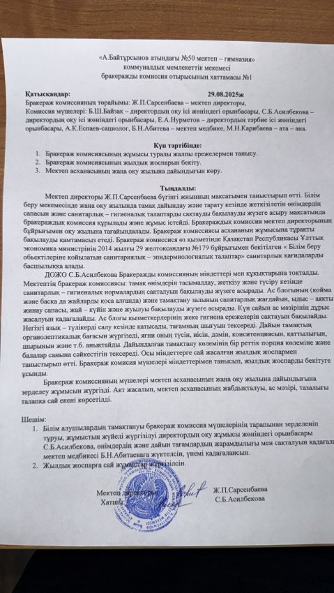 А.Байтұрсынов атындағы№50 мектеп-гимназиясының бракеражды комиссиясының жұмыс жоспары және хаттамасы http://50.shymkent-mektebi.kz/pitanie/2452-abajtrsynov-atynday50-mektep-gimnazijasyny-brakerazhdy-komissijasyny-zhmys-zhospary-zhne-hattamasy.html http://50.shymkent-mektebi.kz/pitanie/2452-abajtrsynov-atynday50-mektep-gimnazijasyny-brakerazhdy-komissijasyny-zhmys-zhospary-zhne-hattamasy.html